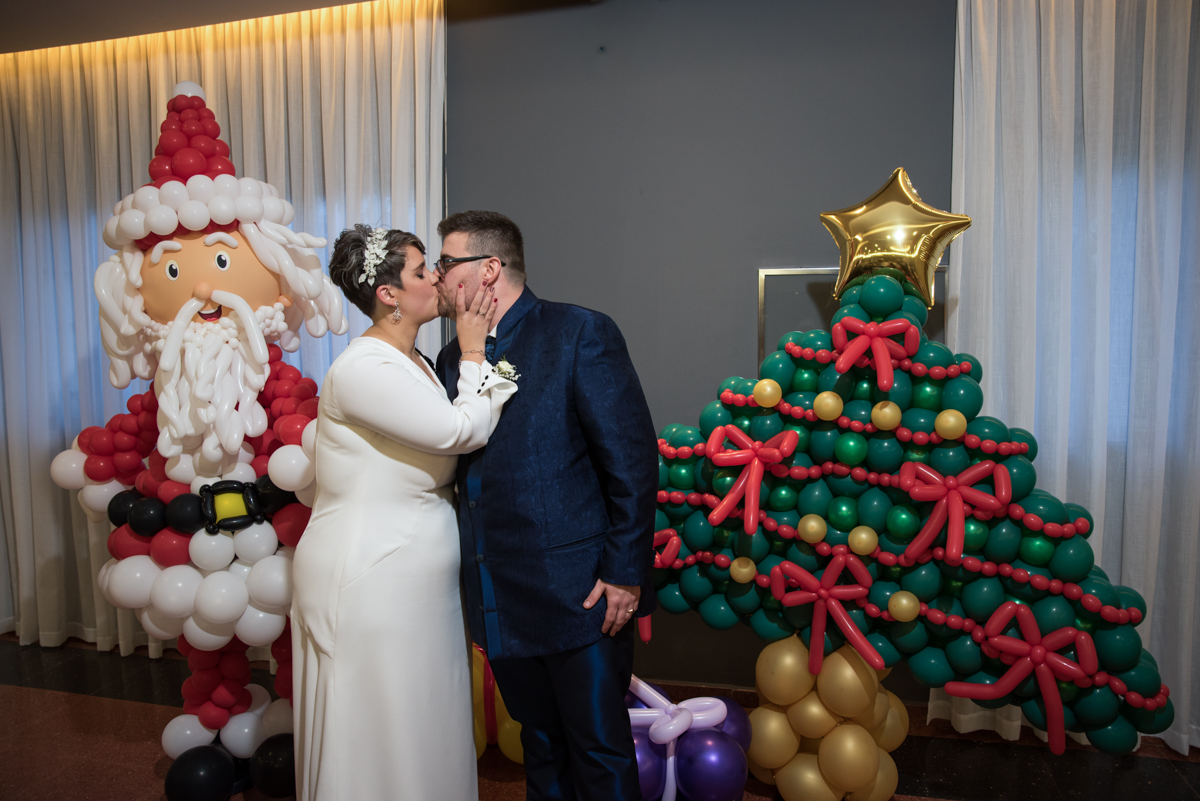 Después, la magia continuó con una bellísima celebración navideña, donde cada rincón respiraba calidez. El salón, decorado con luces, detalles festivos y ese encanto tan propio de la Navidad, parecía abrazar a todos los presentes. Entre familiares y amigos, todo fueron risas sinceras, abrazos largos y lágrimas de felicidad.