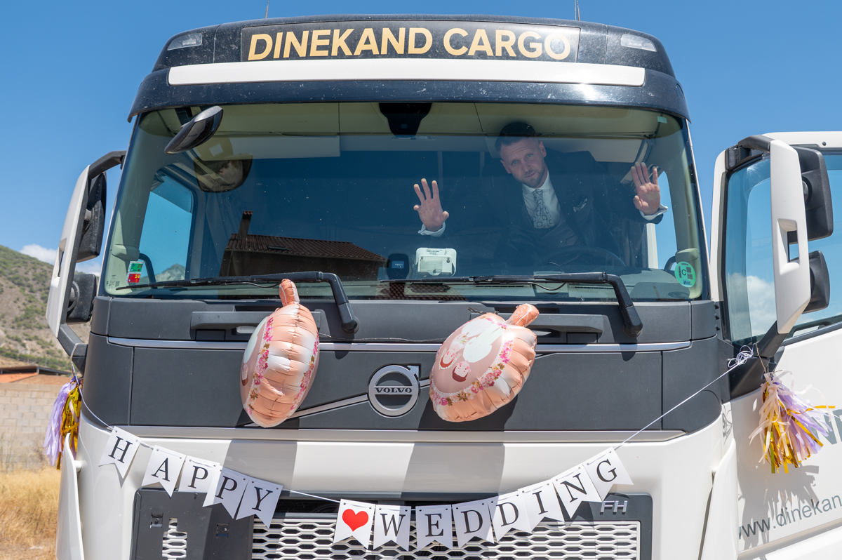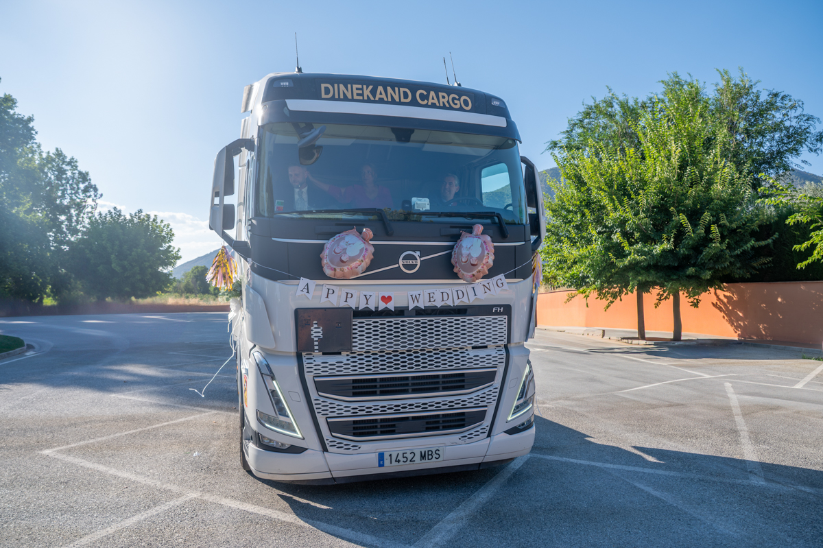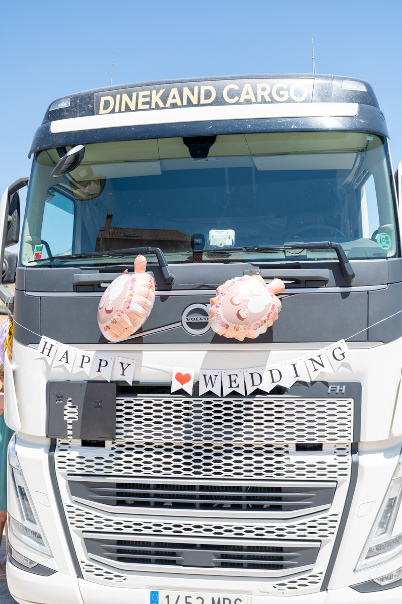 Uno de los momentos más comentados —y más fotografiados— fue la espectacular llegada del novio… ¡en camión! Paco apareció sorprendiendo a todos los invitados, arrancando aplausos, carcajadas y dejando claro desde el inicio que sería una boda diferente y muy divertida.