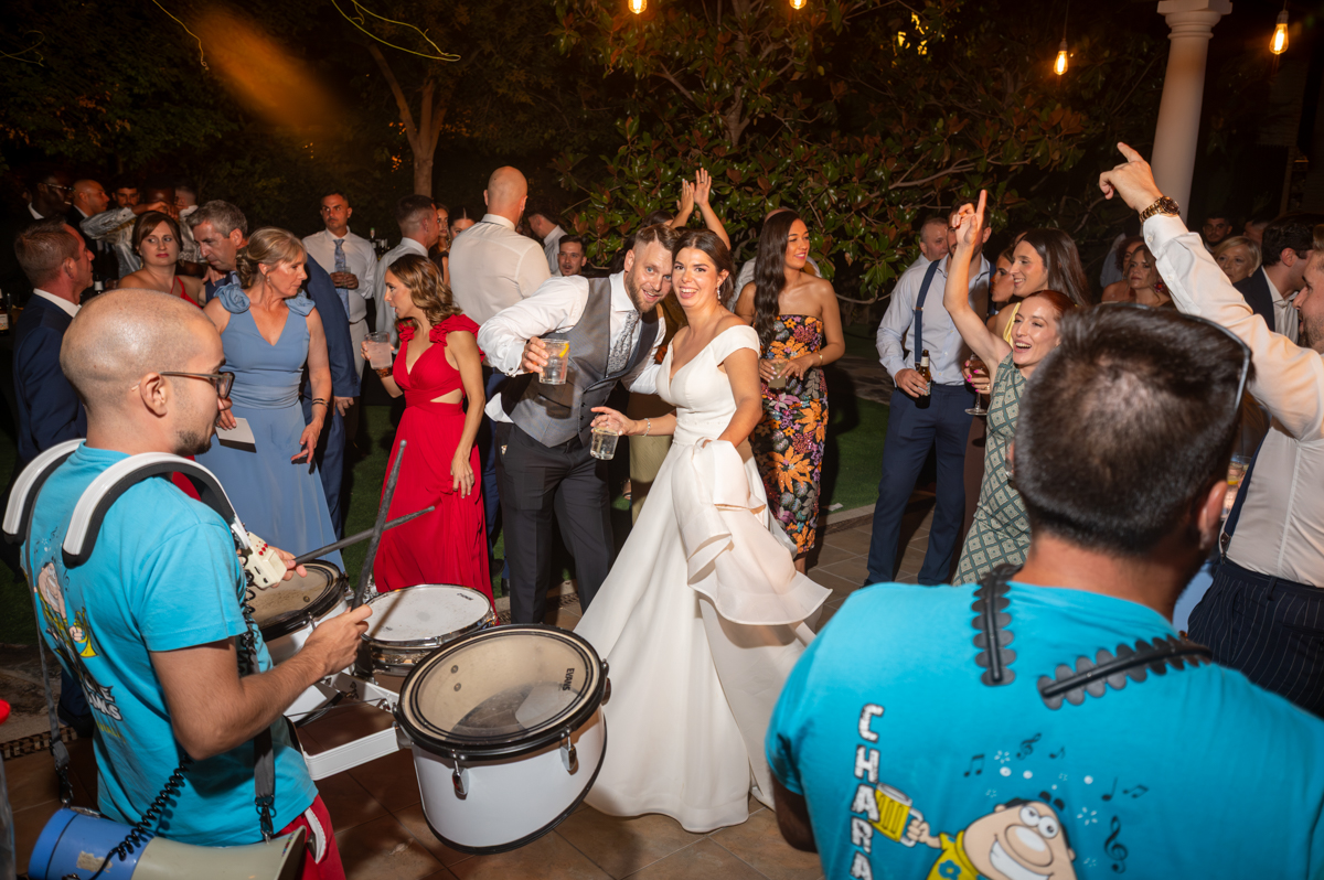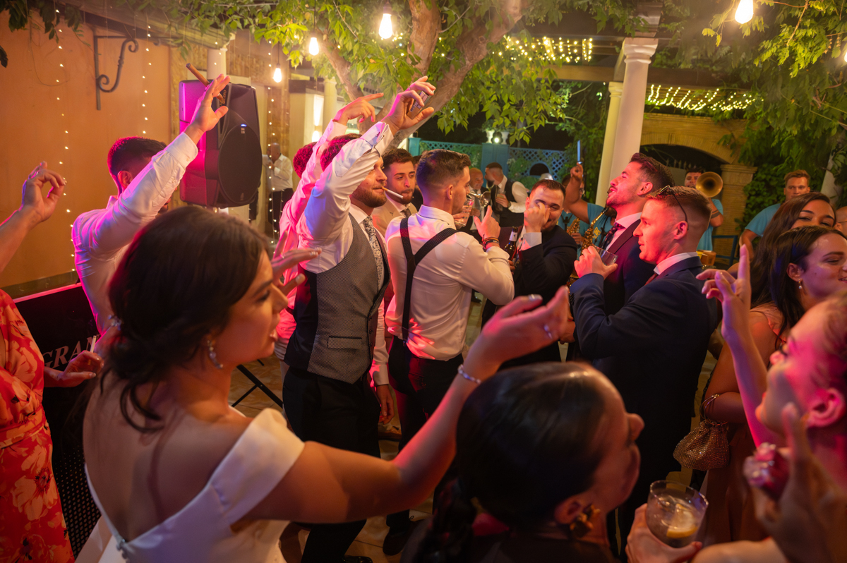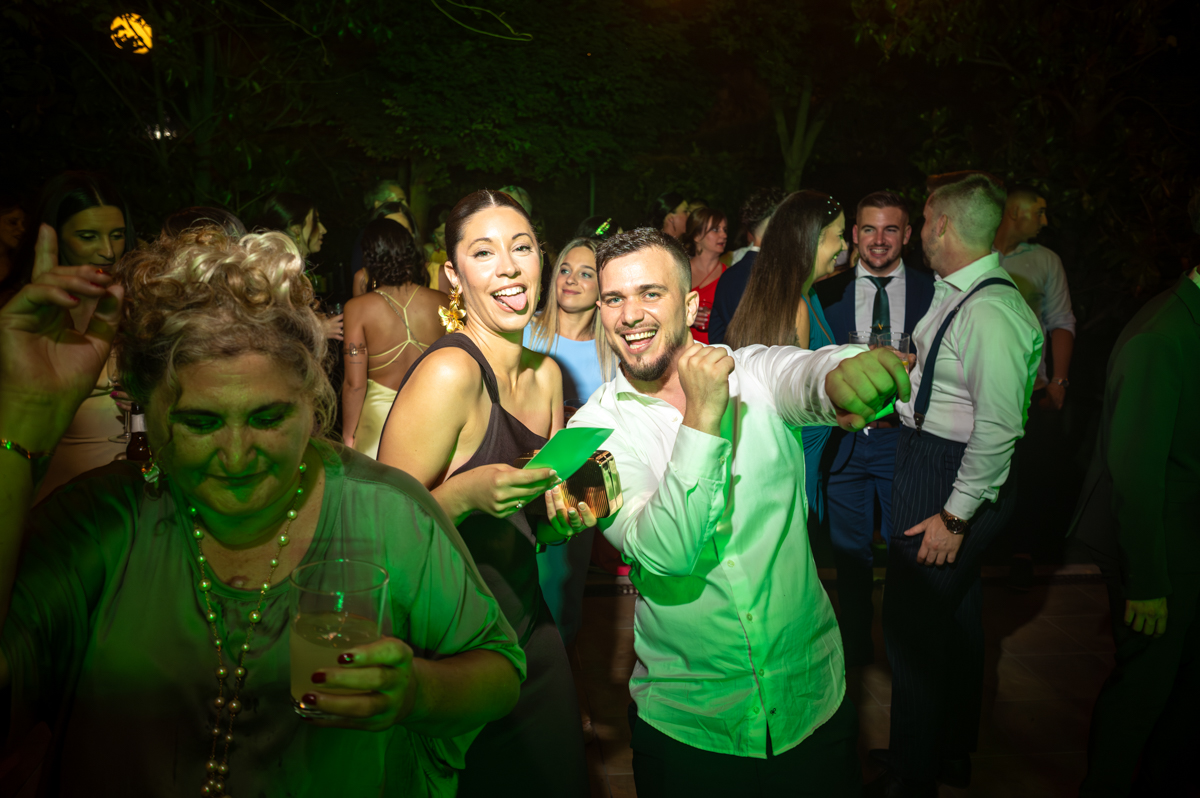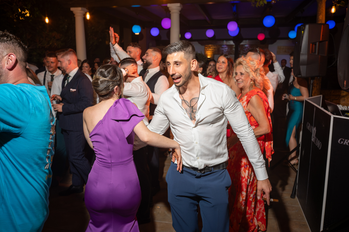 Tras el “sí, quiero”, dio comienzo un gran banquete donde no faltaron brindis, sonrisas y momentos espontáneos. Y cuando parecía que la emoción ya lo había dado todo… arrancó la fiesta. La charanga puso el ritmo y consiguió algo maravilloso: que nadie se quedara sentado. Durante toda la noche, la pista estuvo llena, entre bailes, risas y una energía contagiosa que hizo imposible dejar de disparar fotos.