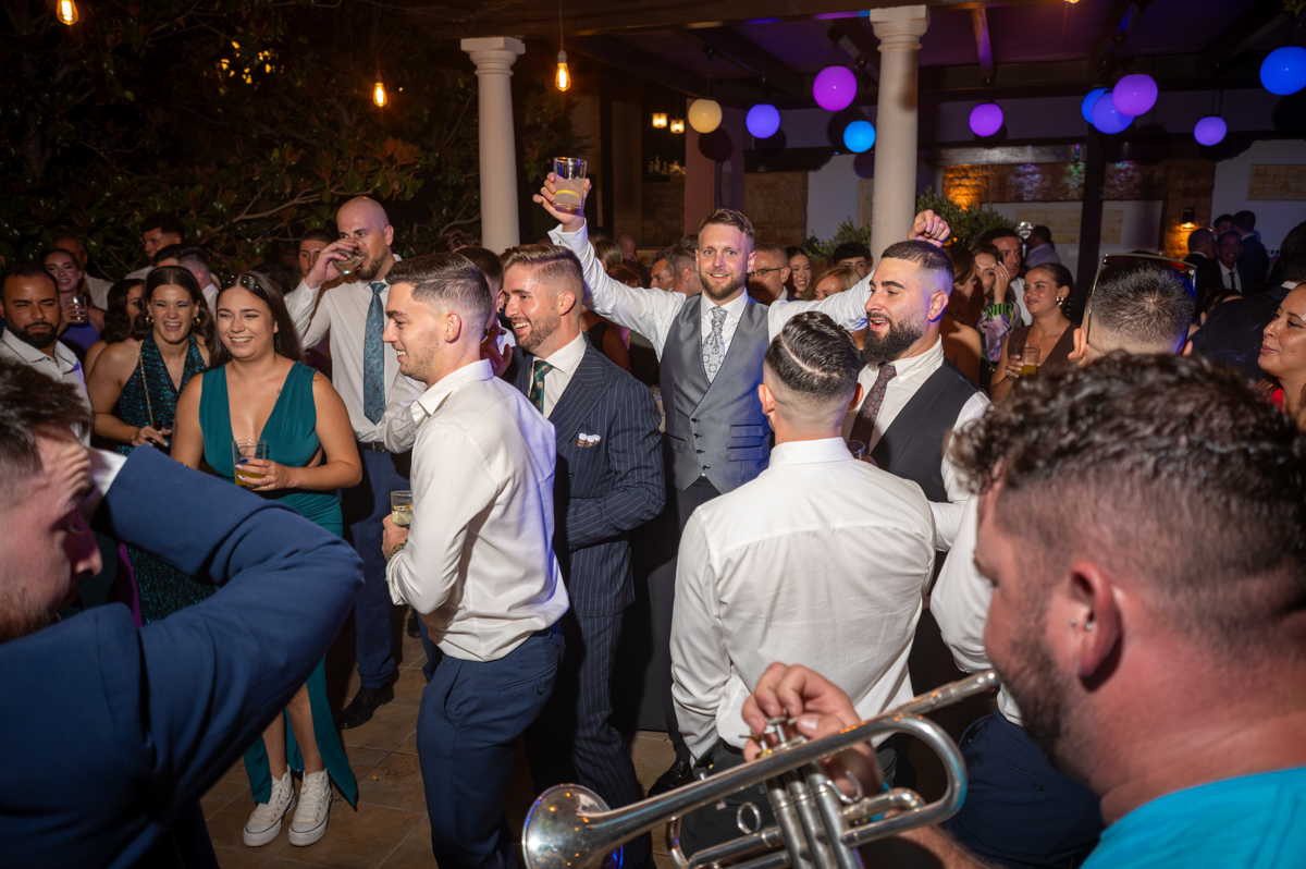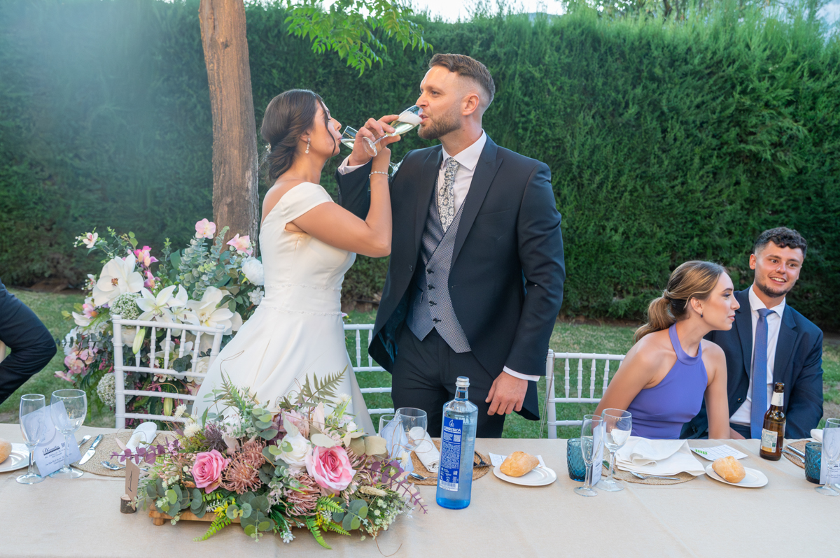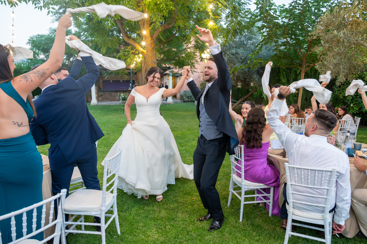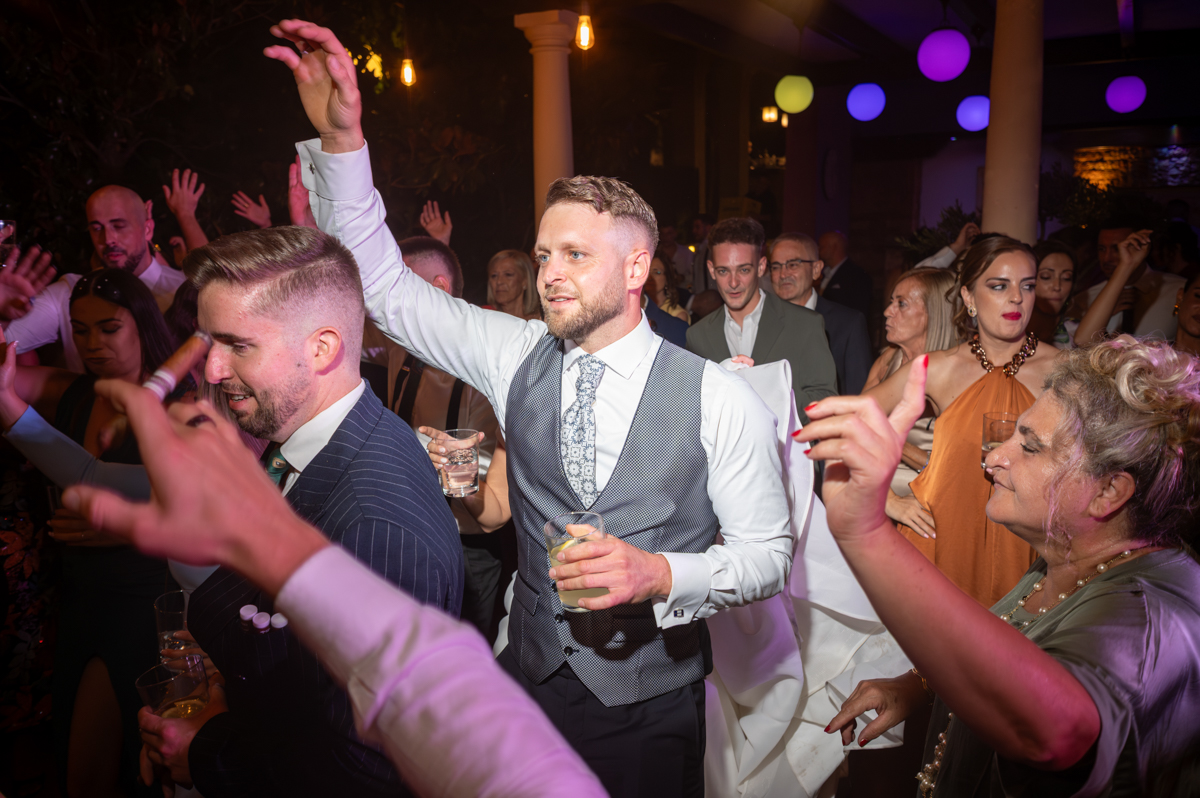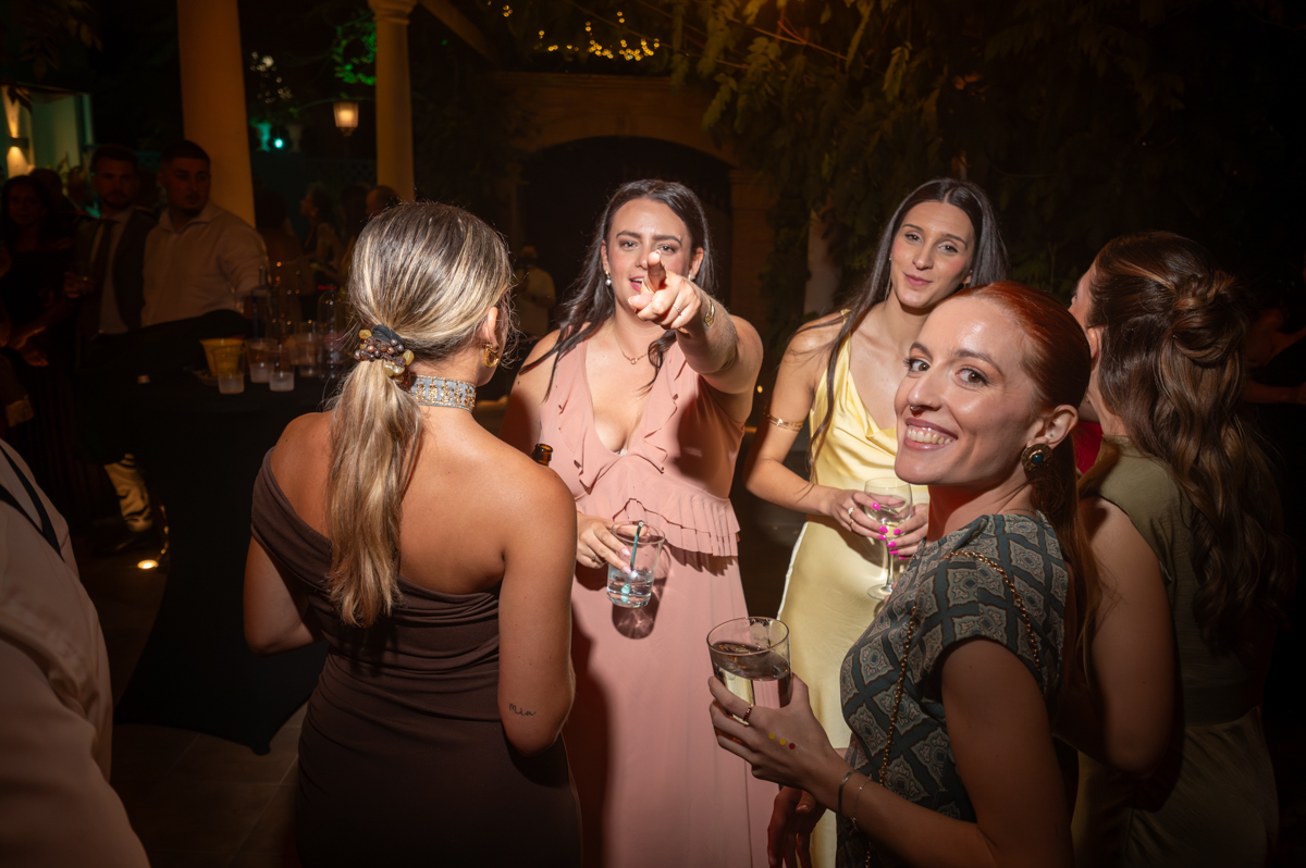 Tras el “sí, quiero”, dio comienzo un gran banquete donde no faltaron brindis, sonrisas y momentos espontáneos. Y cuando parecía que la emoción ya lo había dado todo… arrancó la fiesta. La charanga puso el ritmo y consiguió algo maravilloso: que nadie se quedara sentado. Durante toda la noche, la pista estuvo llena, entre bailes, risas y una energía contagiosa que hizo imposible dejar de disparar fotos.